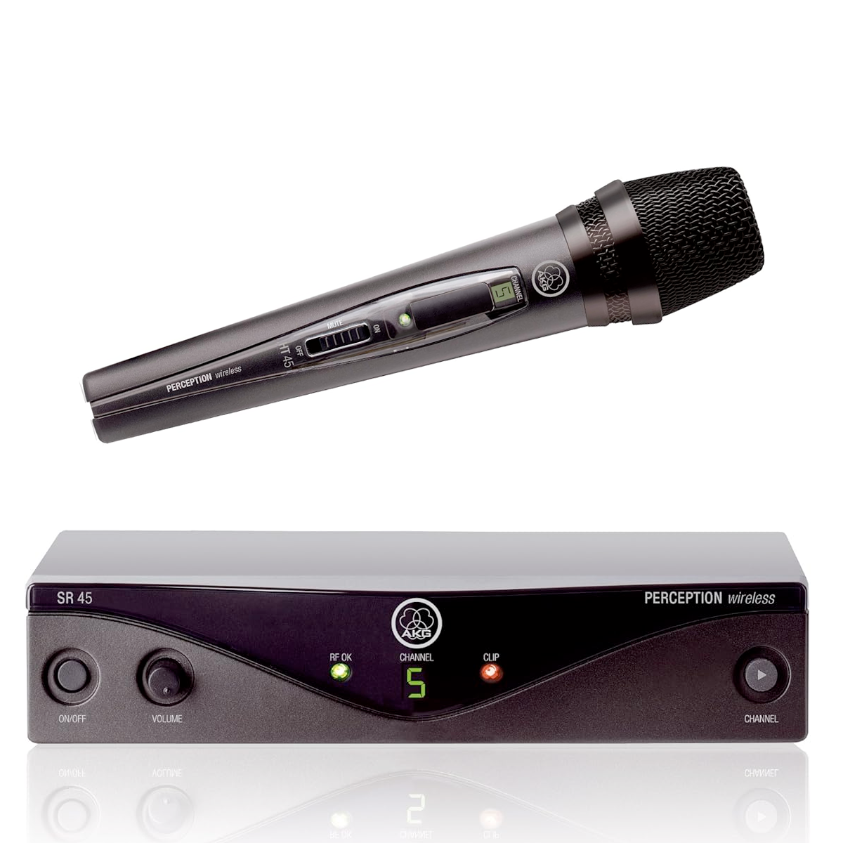 Overall, the AKG Perception Wireless 45 Vocal Set appears to be a reliable and user-friendly solution for those in need of a wireless microphone system optimized for vocal performances. Its features make it suitable for various live sound applications, ranging from small gigs to presentations and events.