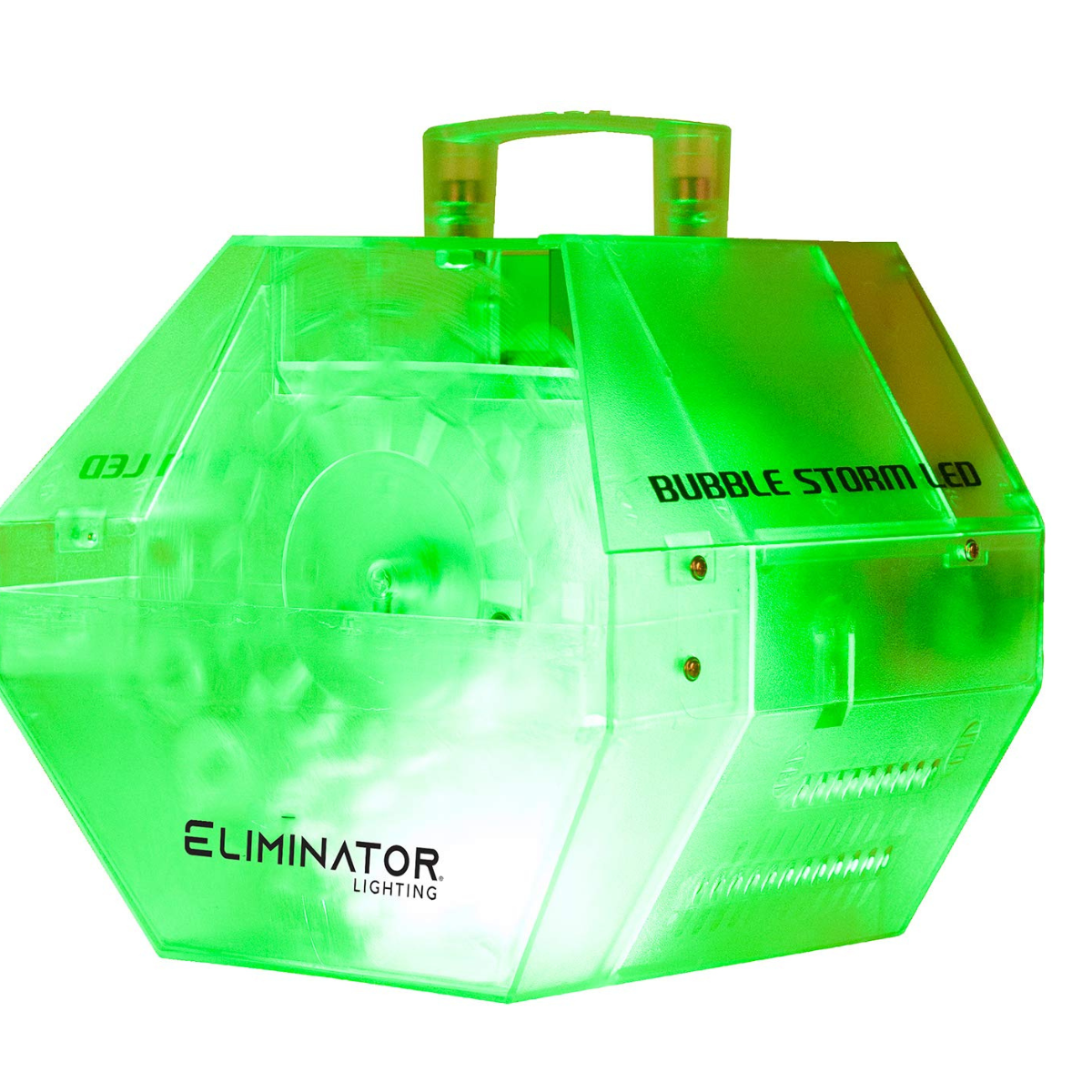 The Eliminator Lighting Bubble Storm LED is a compact bubble machine combines the excitement of producing hundreds of bubbles along with a slow color changing, glowing case with a built-in LED. Uses standard bubble juice.
