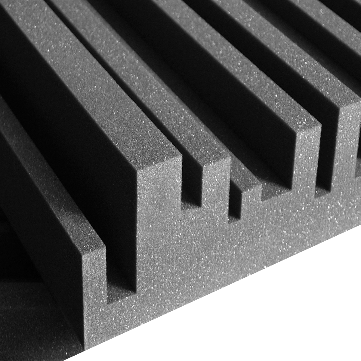 4″ Studiofoam Wedges are recommended for rooms with pronounced low frequency problems or where sonic accuracy is mandatory and maximum acoustic absorption is required (e.g. voiceover or drum booths, forensic audio labs and mastering rooms). 4″ Studiofoam Wedges provide 3x the low-end control of 2″ and can effectively tame even the worst sonic anomalies. In some instances, using 4″ acoustic Studiofoam can lessen the need for significant dedicated bass trapping.