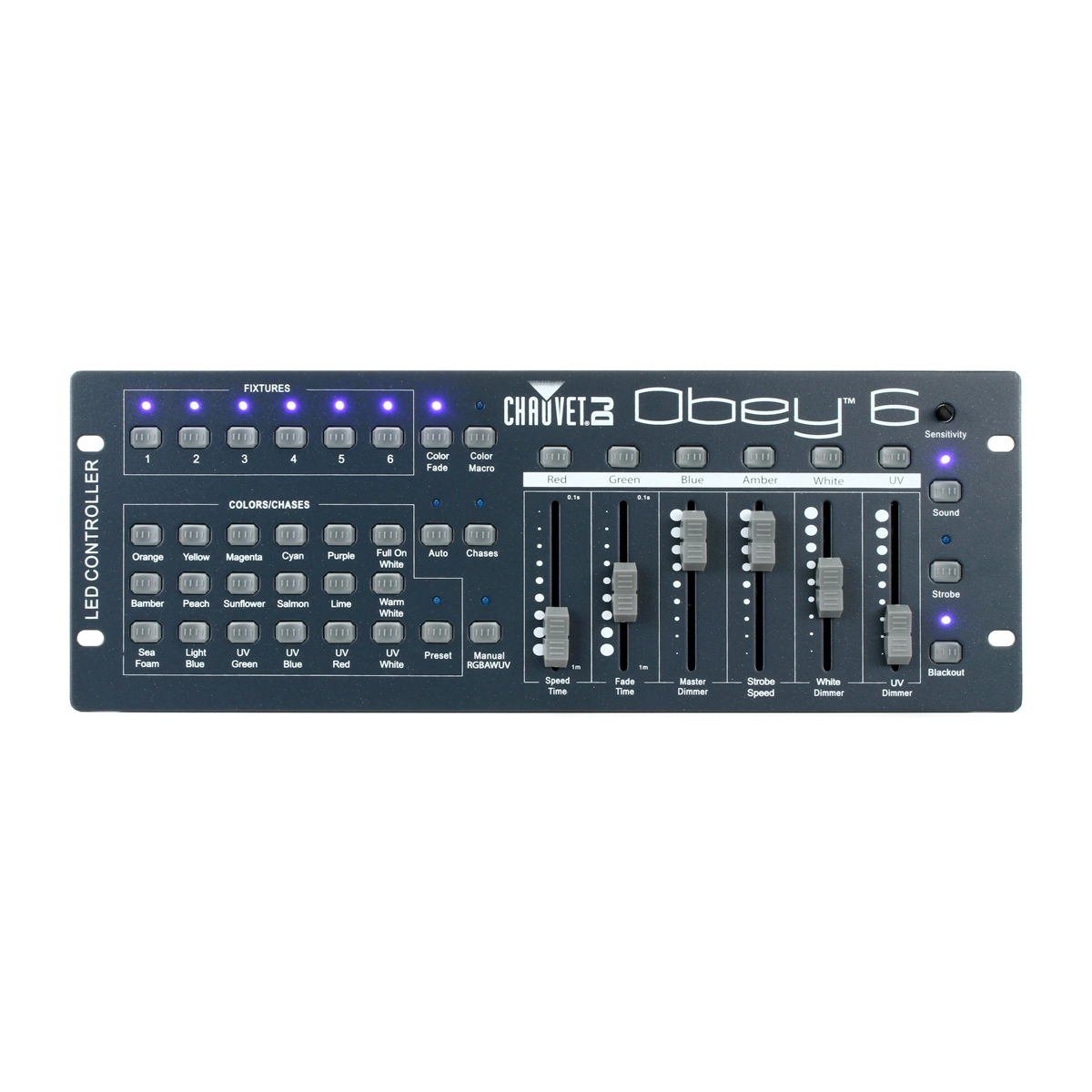 The Chauvet Obey 6 is a versatile and compact DMX controller designed for controlling up to 6 channels per fixture. It is ideal for users who need a simple yet effective way to manage their lighting setups. Its user-friendly interface and multiple playback modes make it suitable for both beginners and experienced lighting professionals.