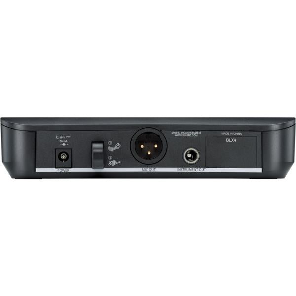 The BLX4 receiver employs microprocessor-controlled internal antenna diversity to improve the quality and reliability of your wireless audio. An LED display shows group and channel settings, while two LED lights indicate when the system is ready for use and the strength of the incoming audio signal. The unit offers 1/4" and XLR outputs for connectivity to PA systems and mixing boards.