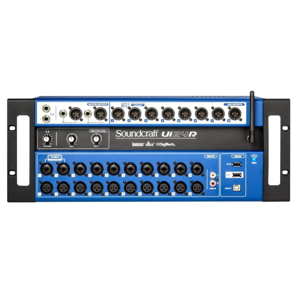 The Soundcraft Ui24R is a complete, rack-mountable, digital mixing and multi-track recording system that delivers flexible I/O, pristine sound quality, intuitive wireless control, and roadworthy reliability—all in a streamlined design. The system can double as a stagebox and can be controlled by up to 10 devices via Ethernet or built-in dual-band Wi-Fi, making it possible to control mixing and multi-track recording wirelessly from anywhere in the venue. With renowned HARMAN signal processing, Studer-designed preamps and much more—from the studio to the stage, Soundcraft Ui24R is the ultimate system for artists, venues and engineers who need to save space and deliver superior sound.